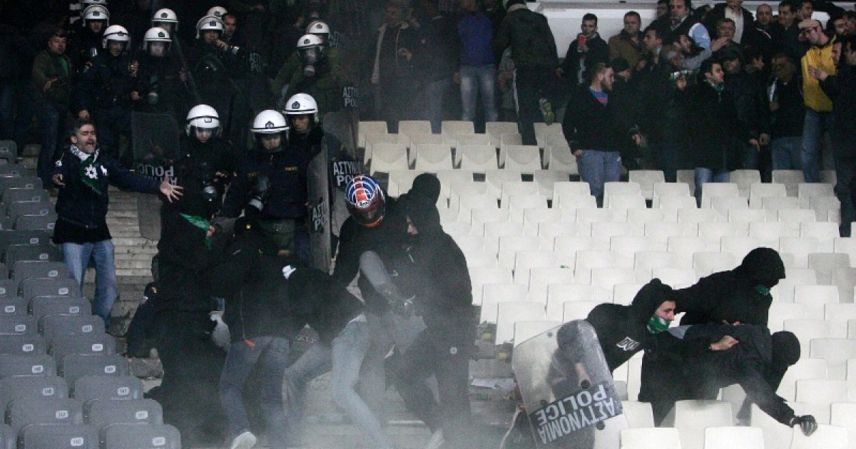 Τα επεισόδια είχαν ξεκινήσει πριν από τις 17:00 στο κλειστό, από οπλισμένους οπαδούς που έκαναν ντου για να μπουν χωρίς εισιτήρια με ό,τι είχαν μέσα στο γήπεδο. Πετούσαν πέτρες προς πάσα κατεύθυνση. Ακόμα και προς τον υπεύθυνο αγώνων του Παναθηναϊκού, κ. Ζαβραδινό, η οποία παραλίγο να χτυπήσει και εμένα, γιατί ο Παναθηναϊκός έχει και εσωτερικά προβλήματα με τους οπαδούς του.