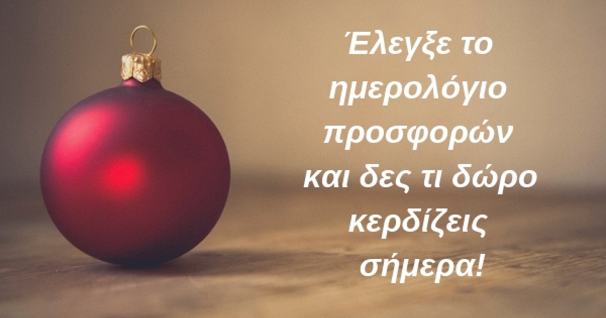 Έλεγξε το ημερολόγιο προσφορών και δες τι δώρο κερδίζεις σήμερα αλλά και τι δώρα θα σου προσφερθούν τις επόμενες ημέρες μέχρι τις 24 Δεκεμβρίου.