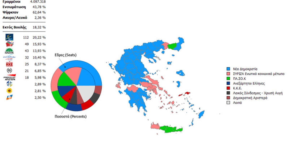 Δεν είναι δυνατόν τα δύο κόμματα που τιμωρήθηκαν από τον λαό με μείωση των δυνάμεών τους στο ένα δεύτερο (1/2) και το ένα τρίτο (1/3), ώστε μαζί να φτάνουν οριακά στο ένα τρίτο (1/3) του εκλογικού σώματος, να έχουν τη δυνατότητα να ...συγκυβερνήσουν -εφόσον το επιθυμούν- συγκεντρώνοντας περισσότερες από τις μισές ή ακριβώς τις μισές έδρες του κοινοβουλίου. Να φτάνει ένα κόμμα που μετά βίας συγκεντρώνει το ένα πέμπτο (1/5) των ψήφων, να μπαίνει στη Βουλή με περισσότερες από το ένα τρίτο (1/3) των εδρών. Απλή αριθμητική.