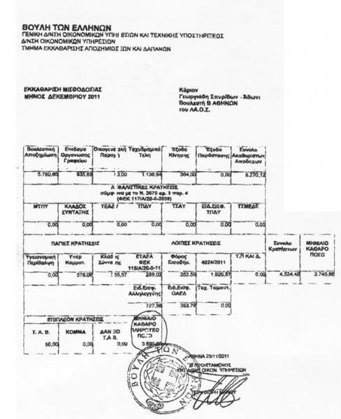 Ο Αδωνις Γεωργιάδης, ο οποίος είχε χθες άγρια κόντρα του με τον Ηλία Κασιδιάρη και τον βουλευτή Γιώργο Γερμενή που τον κατηγόρησε ότι φοράει ρόλεξ αξίας 7.000 ευρώ, δημοσιοποίησε το εκκαθαριστικό του Δεκεμβρίου του 2011.
