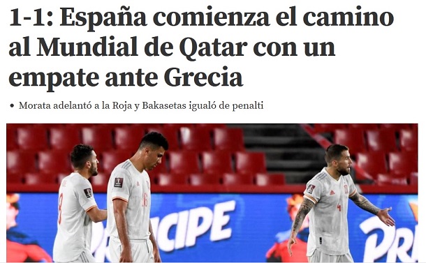 Mundo Deportivo: «Η Ισπανία αρχίζει τον δρόμο προς το Κατάρ με ισοπαλία κόντρα στην Ελλάδα. Η Ισπανία δεν ήταν ο τυφώνας που διέλυσε τους Γερμανούς και η Ελλάδα δεν έδωσε τις ίδιες ευκολίες».