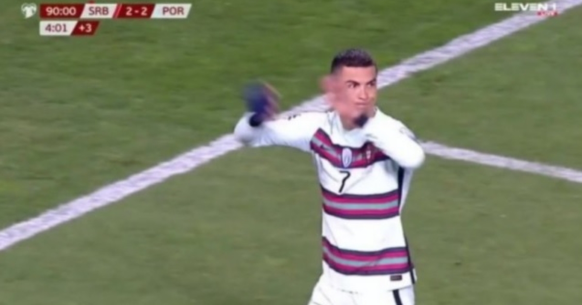 Ο Ρονάλντο δεν μπορούσε να διανοηθεί ότι δεν του καταλογίστηκε το γκολ με τη μπάλα να έχει περάσει τη γραμμή στις καθυστερήσεις της αναμέτρησης με την Σερβία στα προκριματικά του Μουντιάλ 2022, πέταξε το περιβραχιόνιο στο χορτάρι και σηκώθηκε κι έφυγε...