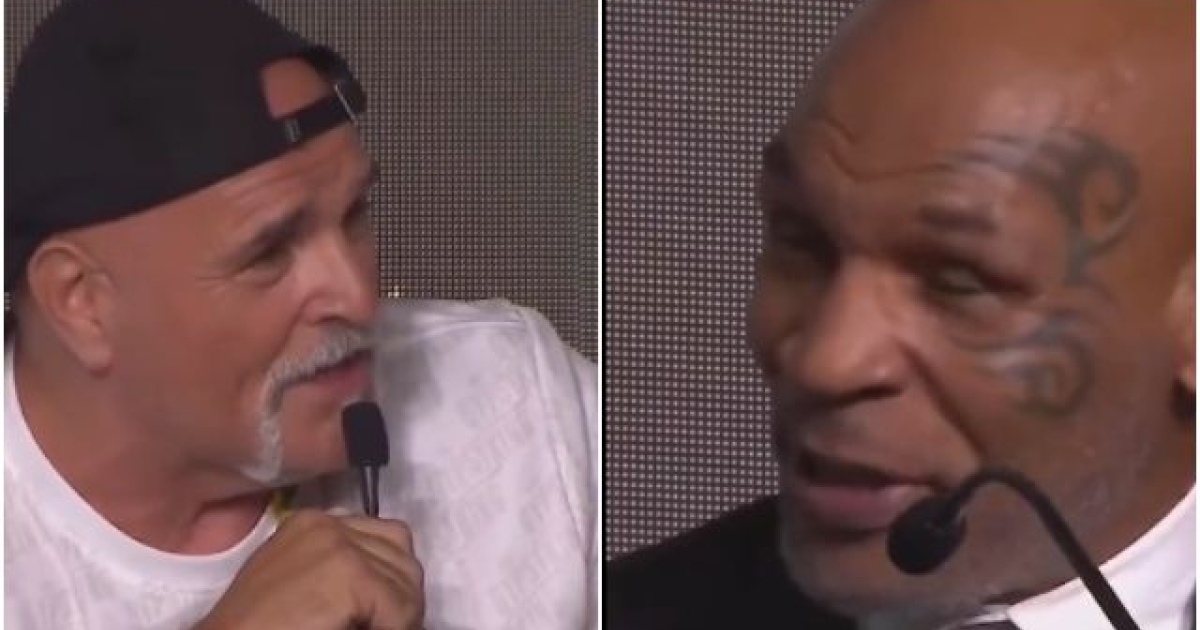 ‼️ Tyson Fury’s father John Fury in an entertaining exchange with Mike Tyson and Francis Ngannou at the final press conference face-off ahead of Saturday night…