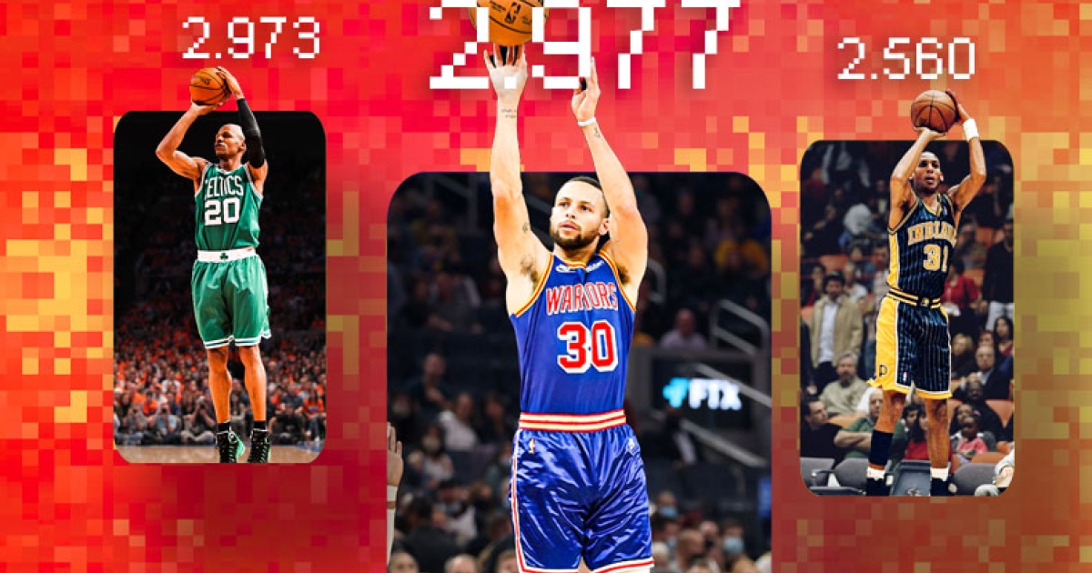 Ο Στεφ Κάρι αποτελεί και... επίσημα τον παίκτη με τα περισσότερα εύστοχα τρίποντα στην ιστορία του ΝΒΑ, αφήνοντας πίσω του και τον Ρέι Άλεν! Άραγε υπάρχει κανείς που να μπορεί να αμφισβητήσει τα κατορθώματα του Στεφ; Άραγε τι να σκέφτονται σήμερα οι Μέμφις Γκρίζλις, όταν στο νούμερο «2» εκείνου του draft είχαν διαλέξει τον Χασίμ Θαμπίτ από την Τανζανία ο οποίος δεν ξεπέρασε τους 2,2 πόντους κατά μέσο όρο στο ΝΒΑ;