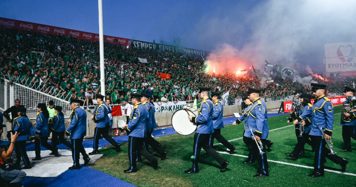 Από την ακριβώς απέναντι πλευρά του γηπέδου, οι Ομονοιάτες έχουν ξεκινήσει το δικό τους πάρτι. Καπνογόνα, συνθήματα και στη μέση διάφορα -σχεδόν ετοιμόρροπα- αυτοκίνητα βαμμένα στα πράσινα να κάνουν ντριφτ μπροστά στα μάτια των έκθαμβων θεατών. Όπως εξηγεί ένας από αυτούς, πρόκειται για ένα εθιμοτυπικό που κρατά για χρόνια και συμβαίνει πριν από την έναρξη κάθε παιχνιδιού. Δεν θα μπορούσε να μη γίνει, καταλήγοντας, στον σημερινό τελικό.