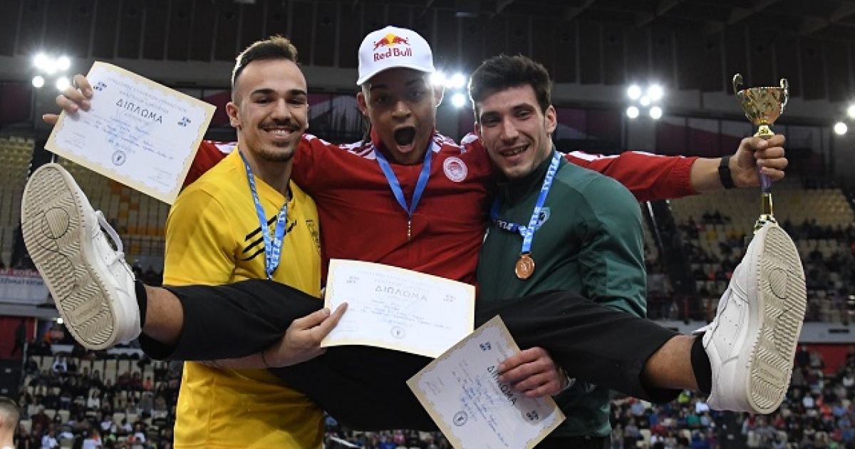Χθες έκανε πανελλήνιο ρεκόρ κλειστού με 5,86μ. και πέτυχε την σπουδαιότερη επίδοση του πρωταθλήματος στο ΣΕΦ, με τους δύο συναθλητές του στο βάθρο, τους Γιάννη Ρίζο και Πέτρο Χατζίου να τον αποθεώνουν και να τον... σηκώνουν στα χέρια, σε μία όμορφη σκηνή.