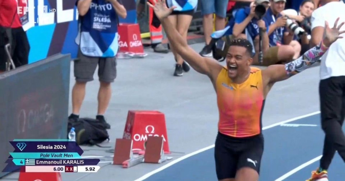 Δείτε το άλμα με το οποίο ο Εμμανουήλ Καραλής ξεπέρασε τα 6 μέτρα και σημείωσε νέο πανελλήνιο ρεκόρ στο άλμα επί κοντώ, στο Diamond League της Σιλέσια.