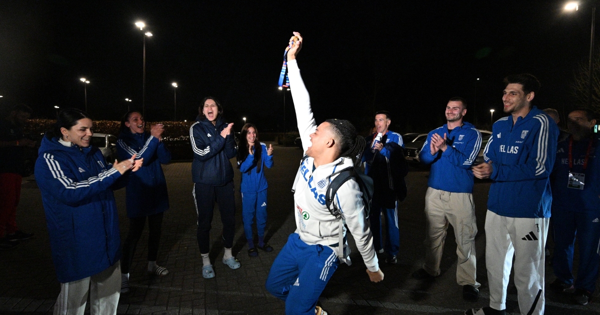 Όλα τα μέλη της εθνικής ομάδας που συμμετείχαν στο ευρωπαϊκό πρωτάθλημα κλειστού στίβου στο Άπελντοορν της Ολλανδίας, περίμεναν τον Εμμανουήλ Καραλή για να τον αποθεώσουν μετά την κατάκτηση του χρυσού μεταλλίου στο επί κοντώ.