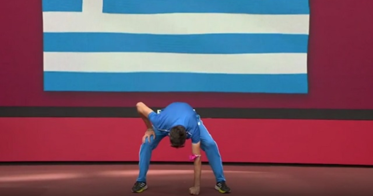 Ο άλτης από τα Γρεβενά βγήκε στον αγωνιστικό χώρο με γυαλιά ηλίου και κατά την ανακοίνωσή του ονόματός του έσκυψε και έβαλε την γροθιά του στο έδαφος, όπως κάνουν οι αθλητές του σούμο στην Ιαπωνία.