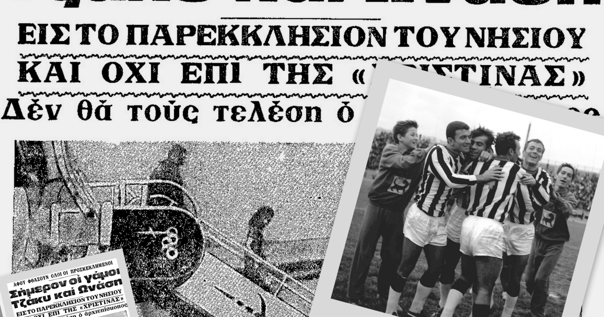 Στις 20 Οκτωβρίου του 1968, για να ακριβολογούμε, όταν όλη η χώρα ζούσε το δικό της παραμυθάκι δίχως να ασχολείται με τις λασπομαχίες στα βουρκωμένα τερέν. Η λάμψη και τα μεγαλεία για το γάμο του Αριστοτέλη Ωνάση με τη Ζακλίν Κένεντι στον Σκορπιό, γοήτευαν την υψηλή και μη ελληνική κοινωνία, καθώς αποτελούσαν «βόμβα εις τους διεθνείς κοσμικούς κύκλους» και «παγκόσμιον θαυμασμόν»! Πού μυαλό για μπάλα…