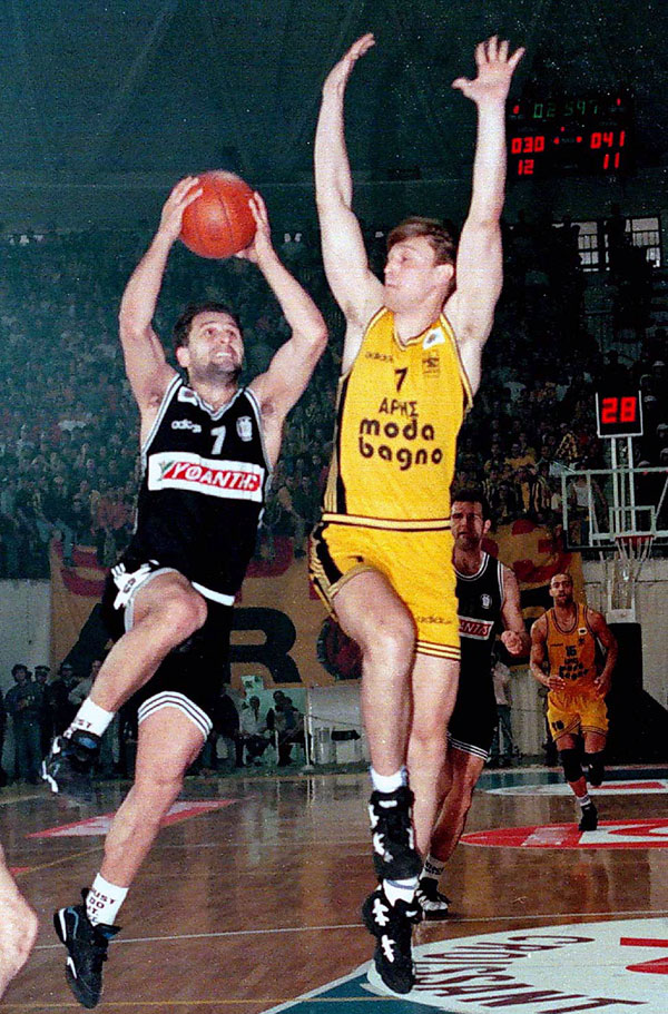 Θα την βγάλει για πρώτη φορά, το καλοκαίρι του 1996, για να φορέσει τα ασπρόμαυρα της Κίντερ Μπολόνια, αγωνίστηκε και στον άλλο «Δικέφαλο» του ελληνικού μπάσκετ, την ΑΕΚ, πριν επιστρέψει το 1999 για να κλείσει την καριέρα του στον ΠΑΟΚ.