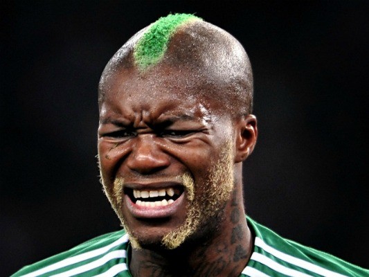 Τα μαλλιά του Νιγηριανού άσου μπορούν εύκολα να θυμίσουν σφουγγαρίστρα. Πράσινα ράστα στο κεφάλι σε συνδυασμό με δύο σαν κοτσιδάκια μπροστά δημιουργούν ένα... τουλάχιστον κακόγουστο αποτέλεσμα.