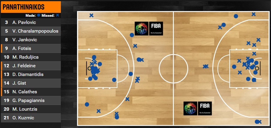 Ολοκληρώνοντας σας παραθέτουμε με γράφημα τα σημεία όλων των σουτ που πήραν οι δύο ομάδες στην αναμέτρηση του πρώτου γύρου.