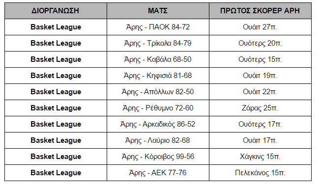 Ποιο είναι το επόμενο εντός έδρας εμπόδιο για τον Άρη; Ο Ολυμπιακός! Η ομάδα του Πειραιά έρχεται από τη σπουδαία νίκη επί της Ρεάλ Μαδρίτης, αποτέλεσμα το οποίο συνδυάστηκε με την καλύτερη εμφάνιση των «ερυθρόλευκων» στη φετινή Euroleague και μπροστά της έχει το τελικό στη Μόσχα κόντρα στην Χίμκι (31/03). Πρώτα, όμως, ο Βασίλης Σπανούλης κι η παρέα του θα πρέπει να καταφέρουν να βάλουν ένα… τέλος στο φοβερό σερί που «τρέχει» εντός ο Άρης και το οποίο θα δείτε αναλυτικά στους πίνακες που ακολουθούν: