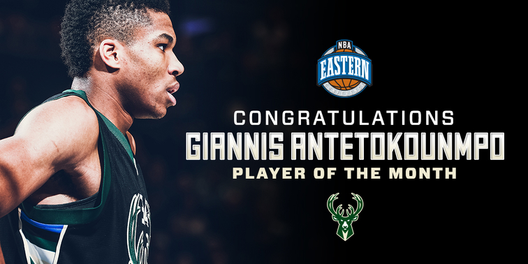 Ο Γιάννης Αντετοκούνμπο αναδείχτηκε για πρώτη φορά στην καριέρα του «Παίκτης του Μήνα» στην Ανατολή αφού τον Μάρτιο έκανε ό,τι ήθελε στο παρκέ.