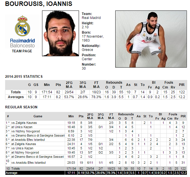 Όπως και ο Σοφοκλής Σχορτσανίτης, έτσι και ο Γιάννης Μπουρούσης είναι από τους Έλληνες που έχουν βρει την... υγειά τους στο εξωτερικό. Ο άλλοτε σέντερ του Ολυμπιακού και της ΑΕΚ πραγματοποιεί πολύ καλή σεζόν μέχρι τώρα, δίνει πολλές λύσεις στη Ρεάλ Μαδρίτης και έχει ξεκινήσει βασικός στις 9 από τις 10 αναμετρήσεις της regular season της Ευρωλίγκας. Εννοείται πως ο Πάμπλο Λάσο τον εμπιστεύεται, με τον Μπουρούση να αναδεικνύεται MVP στην τελευταία αγωνιστική της πρώτης φάσης.
