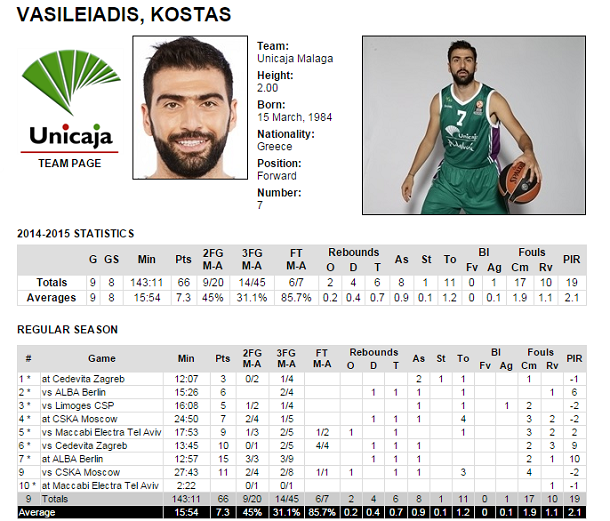 Αρκετά καλή χρονιά πραγματοποιεί ο Κώστας Βασιλειάδης με την Ουνικάχα Μάλαγα, η οποία εντυπωσιάζει στην ACB και στην Ευρωλίγκα κατάφερε να εξασφαλίσει τη συμμετοχή της στο TOP 16. Στα highlights του Βασιλειάδη το σουτ νίκης που έβαλε κόντρα στην Άλμπα Βερολίνου, με τον διεθνή γκαρντ να απολαμβάνει της εμπιστοσύνης του Χουάν Πλάθα, ο οποίος τον έχει χρησιμοποιήσει 8 φορές στη βασική πεντάδα.