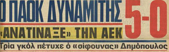 Εκείνο το 5-0 παραμένει μέχρι σήμερα μεγαλύτερη νίκη της ιστορίας του ΠΑΟΚ κόντρα στην ΑΕΚ, στο γήπεδο της Τούμπας.
