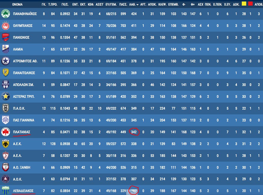 - Στην αγωνιστική ξεχώρισε ο Πλατανιάς, που μετρώντας 55, δεν μπόρεσε να διεκδικήσει κάτι αξιόλογο στη Λαμία, όπου ηττήθηκε εύκολα με 2-0. Οι Κρητικοί δεν είναι από τις ομάδες που κάνουν τα περισσότερα στο πρωτάθλημα, αφού στη λίστα βρίσκονται μάλλον χαμηλά, όμως σε αυτή την αγωνιστική δεν απέφυγαν αυτή την πρωτιά.