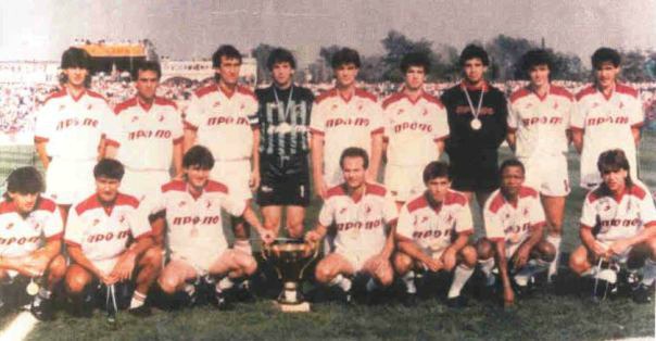 Ήταν 1η Μαΐου 1988 όταν ο αείμνηστος, Γιώργος Μητσιμπόνας, πέτυχε το γκολ στο «Αλκαζάρ», στο 87ο λεπτό με αντίπαλο τον Ηρακλή και έδωσε το πρωτάθλημα στη Λάρισα. Τότε έσπασε το κατεστημένο και έγινε η πρώτη επαρχιακή ομάδα που κατακτούσε πρωτάθλημα Ελλάδας! Το 1988 η Λάρισα ήταν μια ομάδα-μοντέλο. Είχε χτιστεί με επιμονή και υπομονή πάνω στα ταλέντα που τότε έβγαζε εν αφθονία ο θεσσαλικός κάμπος. Αρχιτέκτονας αυτής της ομάδας ο Γιάτσεκ Γκμοχ.