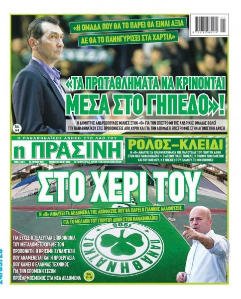 Τα αθλητικά πρωτοσέλιδα της Κυριακής 24/5