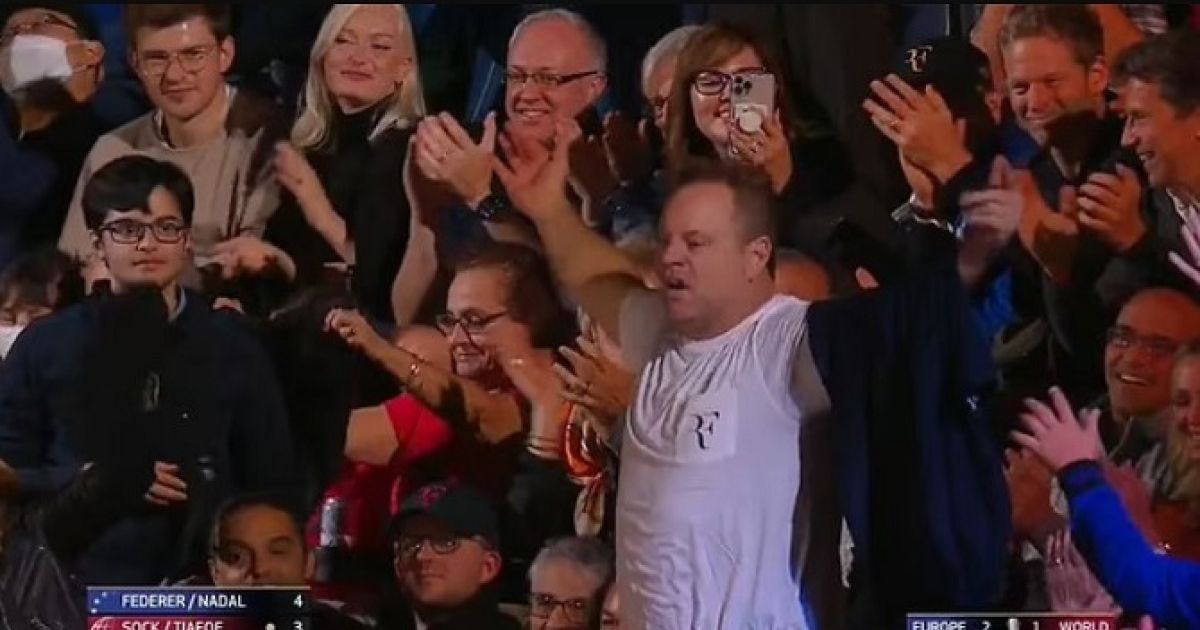 Μέχρι τη στιγμή που ένας φίλαθλος θέλησε να κλέψει λίγη από τη δόξα. Φορώντας 11 t-shirts των Φέντερερ και Ναδάλ, ο φίλαθλος άρχισε το δικό του σόου στο διάλειμμα μετά το 7ο γκέιμ του πρώτου σετ στον αγώνα του διπλού.