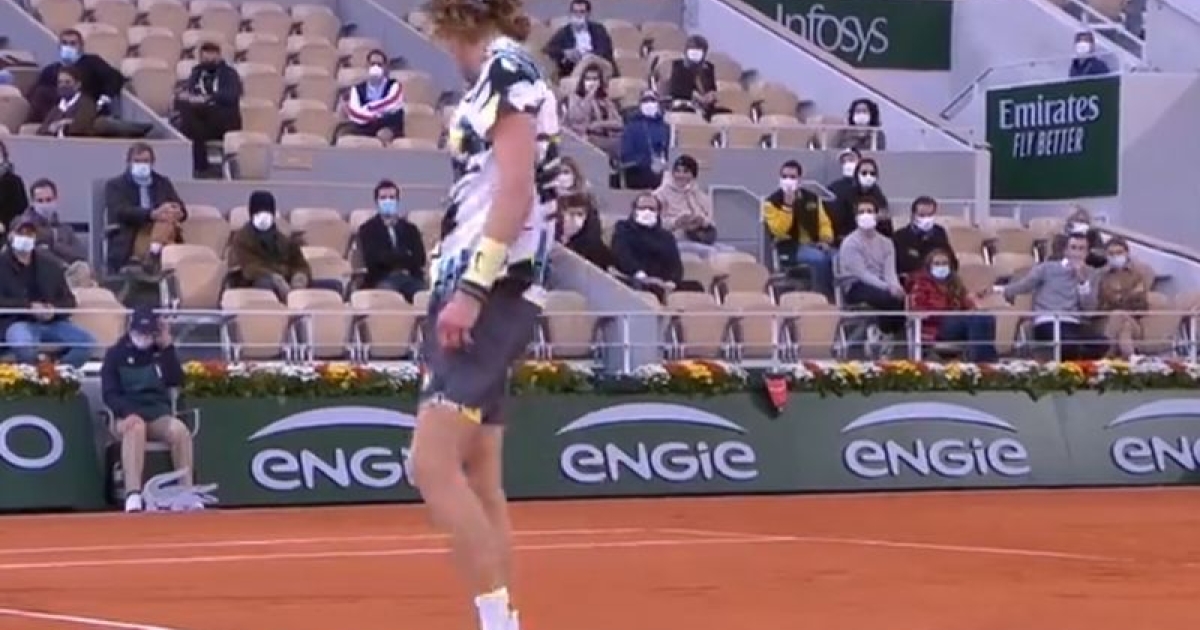 Στη ρακέτα του ξέσπασε ο Αντρέι Ρούμπλεφ όταν βρέθηκε πίσω με 3-1 και στο 3ο σετ του προημιτελικού του Roland Garros με τον Στέφανο Τσιτσιπά και έβλεπε το όνειρο να ... φεύγει.