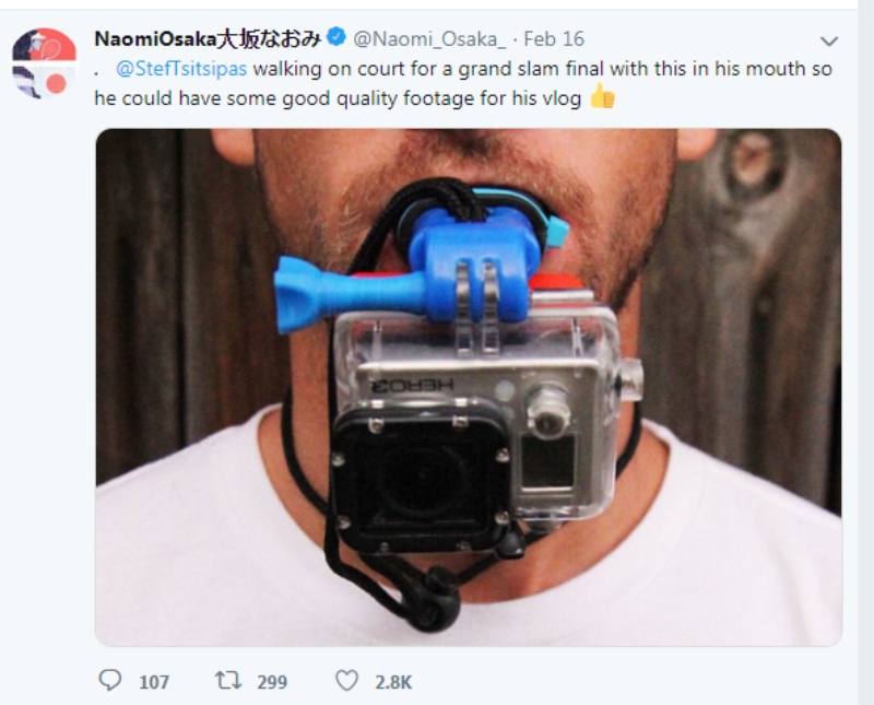 Πριν από λίγες ώρες η Οσάκα, η οποία πρόσφατα ανακοίνωσε το διαζύγιο με τον προπονητή της και πήρε νέο αυτοκίνητο για να ξεχάσει, έστειλε ένα tweet στον Τσιτσιπά και του πρότεινε μια κάμερα-στόματος για να χρησιμοποιήσει στον τελικό του Grand Slam.