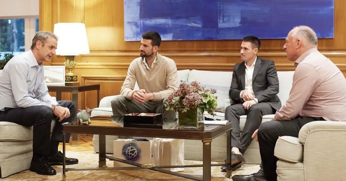 «Σήμερα το απόγευμα υποδέχθηκα στο γραφείο μου τον θρύλο του τένις Νόβακ Τζόκοβιτς, τον αδερφό του Τζόρτζε και τον πρόεδρο της ελληνικής φίλαθλης ομοσπονδίας αντισφαίρισης Θοδωρή Γκλαβά.