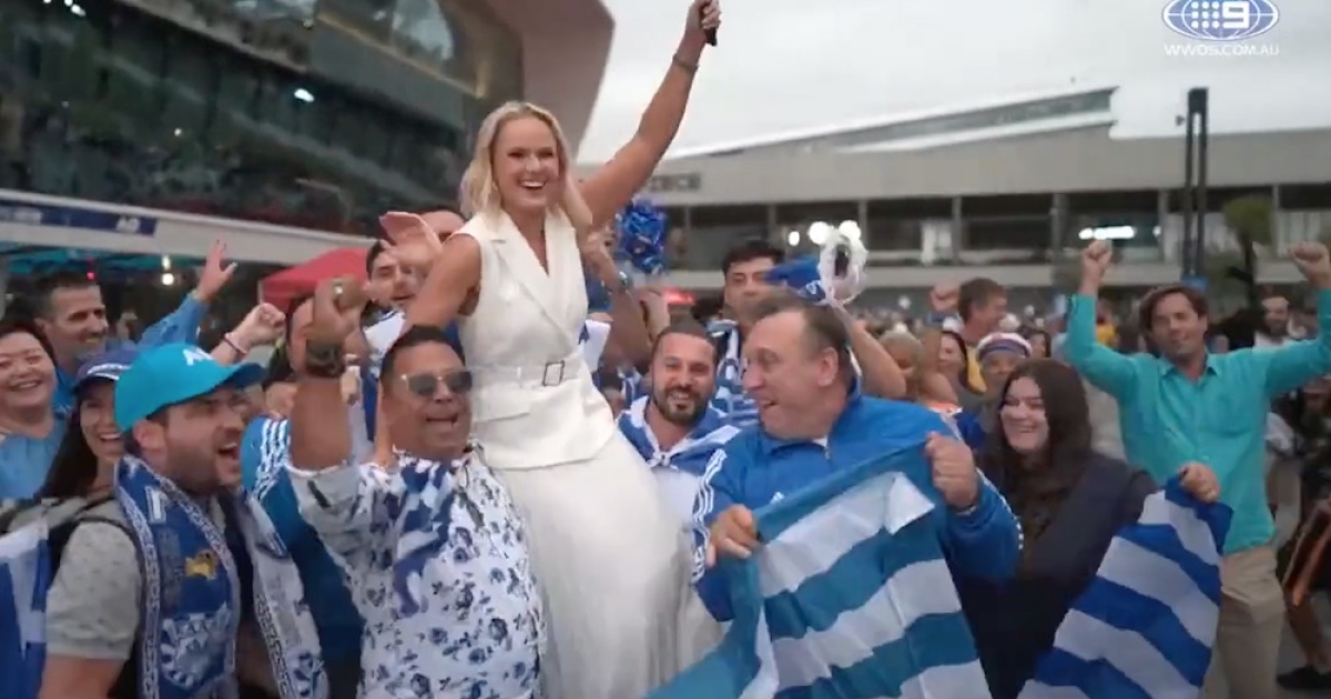 Η ατμόσφαιρα θυμίζει… ελληνικό γήπεδο και από τους Έλληνες δεν γλίτωσε ούτε η Αυστραλή δημοσιογράφος, Έμα Λόρενς, την οποία σήκωσαν στα χέρια! Δείτε το απίθανο σκηνικό: