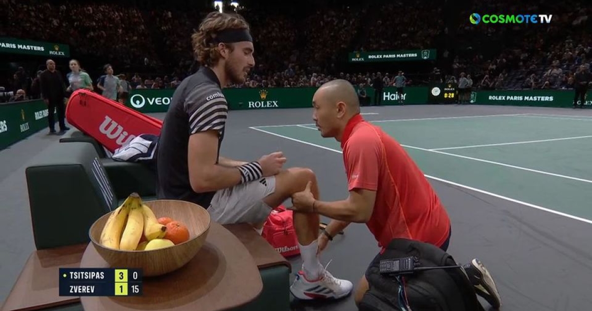 Κατά τη διάρκεια της αναμέτρησης με τον Αλεξάντερ Ζβέρεφ ο Στέφανος Τσιτσιπάς ένιωσε ενοχλήσει στο δεξί γόνατο και ζήτησε ιατρική βοήθεια.