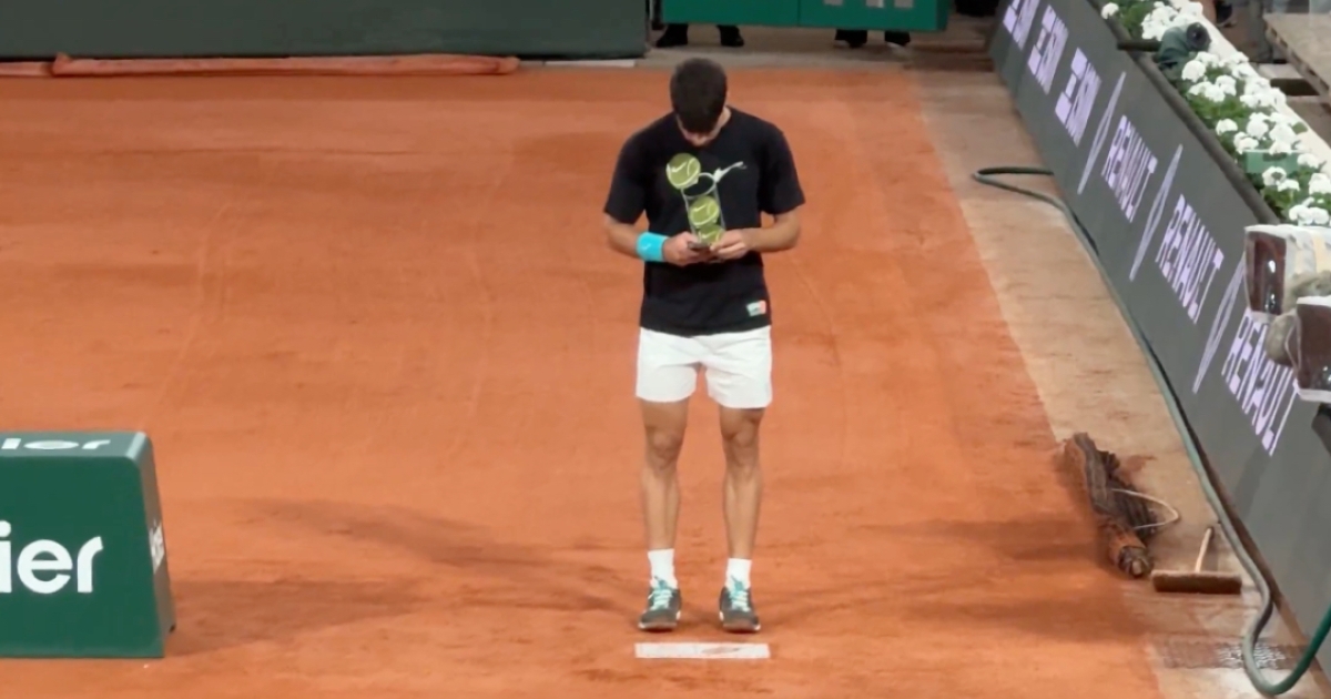 Στο πλαίσιο της προετοιμασίας για τον μεγάλο ημιτελικό, ο Κάρλος Αλκαράθ προπονήθηκε στο Philippe Chatrier όπου και φιλοξενούνται τα τελευταία ματς της διοργάνωσης. Ο ίδιος σταμάτησε το session για να βγάλει φωτογραφία το footprint του Ραφαέλ Ναδάλ.