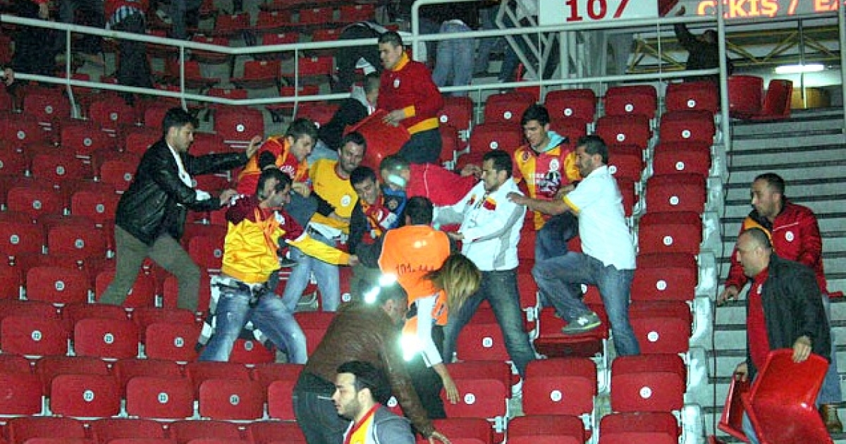Αυτοί της Γαλατάσαραϊ δεν έχασαν την ευκαιρία γι' αντίποινα κι η προθέρμανση των δύο ομάδων διεκόπη απ' τα επεισόδια στις εξέδρες.