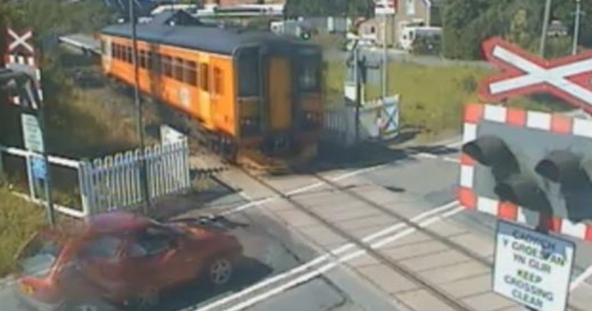 Ένας οδηγός αυτοκινήτου στην Ουαλία πέρασε από διάβαση τρένου την ώρα που εκείνο ερχόταν, καταφέρνοντας να αποφύγει κυριολεκτικά την τελευταία στιγμή τη σύγκρουση!