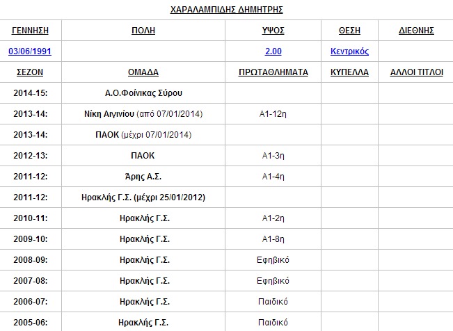 Ο Δημήτρης Χαραλαμπίδης γεννήθηκε στις 3-6-1991, έχει ύψος 2,00 και αγωνίζεται στη θέση του κεντρικού. Πέρυσι αγωνίστηκε σε ΠΑΟΚ (Α’ γύρος) και Νίκη Αιγινίου (Β’ γύρος), ενώ παλιότερα έχει την φανέλα και των Άρη, Ηρακλή.