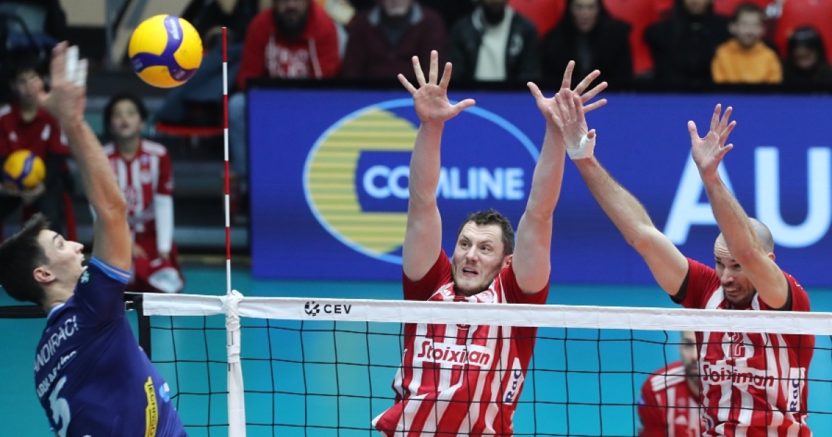 ΟΛΥΜΠΙΑΚΟΣ (Ντανιέλ Καστελάνι): Παγένκ 6 (4/8 επ., 2 άσοι), Στερν 15 (13/33 επ., 1 άσος, 1 μπλοκ), Κουμεντάκης 5 (5/12 επ., 30% υπ. – 20% άριστες), Τράβιτσα 1 (1/4 επ.), Τζούριτς 3 (2/6 επ., 1 άσος), Ιντάλγκο 14 (11/27 επ., 3 άσοι, 33% υπ. – 28% άριστες) / Καρασαββίδης (λ., 30% υπ. – 30% άριστες), Γκουσταβάο 5 (4/6 επ., 1 μπλοκ), Τζιάβρας (λ., 75% υπ. – 25% άριστες), Δαλακούρας 2 (1/4 επ., 1 μπλοκ, 57% υπ. – 43% άριστες).