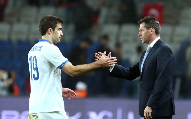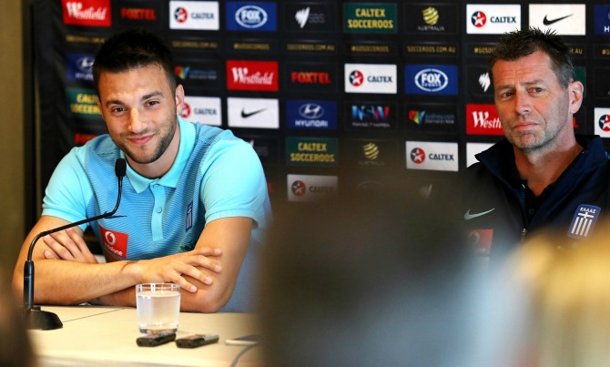6) Μαζί με τον συνάδελφό του, Άγγελο Ποστέκογλου, προπονητή της Αυστραλίας πριν το 2-1 στην χώρα των καγκουρό.