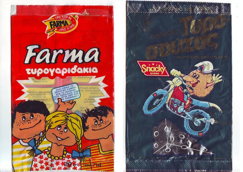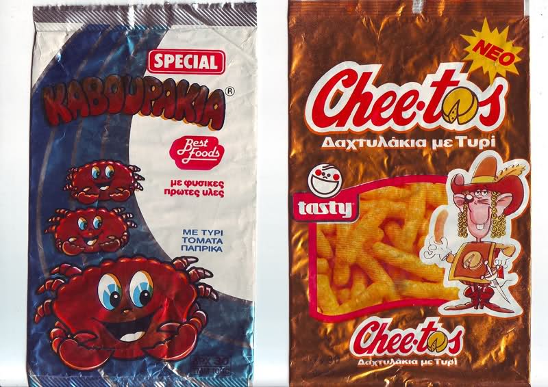 Τα «Καβουράκια με τυρί, τομάτα και πάπρικα», οι «πικάντικες φατσούλες με τομάτα και τυρί», «μπαμπούλες» που παρέπεμπαν σε δρακουλίνια, τα «Μπλα-Μπλα γελαστά γαριδάκια», τα «Αγρίμια με πικάντικη γεύση τυριού και ντομάτας», τα «ριγέ πατατάκια Ζαπάτα», τα «στριφτούλια», τα «δαγκώνια», τα «ρίκι τίκι», ξυνπνούν ευχάριστες μνήμες σε όσους τα γεύθηκαν.