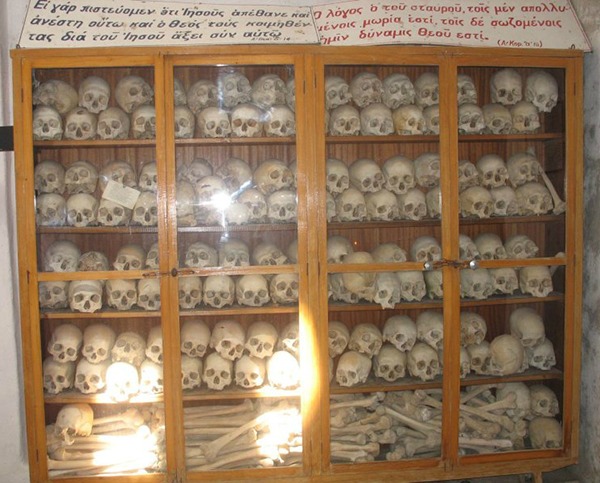 Το οστεοφυλάκιο στη Νέα Μονή όπου βρίσκονται κρανία των θυμάτων της σφαγής.