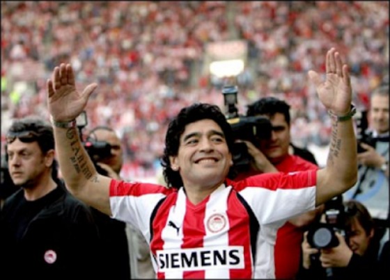 11. ΟΤΑΝ Ο ΝΤΙΕΓΟ ΜΑΡΑΝΤΟΝΑ ΕΓΙΝΕ ΜΕΛΟΣ ΤΟΥ ΟΛΥΜΠΙΑΚΟΥ: Στις 16/1/2005 ο Ντιέγο Αρμάντο Μαραντόνα έδωσε το παρών στο γήπεδο Καραϊσκάκη πριν το ματς με Ηρακλή. Λίγο πριν την έναρξη του αγώνα ο Ντιεγκίτο εμφανίστηκε στον αγωνιστικό χώρο γνωρίζοντας την αποθέωση από τους «ερυθρόλευκους» οπαδούς. Μάλιστα πήρε το μικρόφωνο και ξεσηκώνοντας το κοινό φώναξε: «Ζήτω η Ελλάδα, Ζήτω ο Ολυμπιακός» με τους φιλάθλους να ανταποδίδουν τραγουδώντας «Μαραντόνα είσαι τρέλα με την κόκκινη φανέλα». Τότε ο Αργεντινός Θρύλος του παγκόσμιου ποδοσφαίρου σήκωσε στον αέρα την «ερυθρόλευκη» φανέλα που του χάρισε η ομάδα με τον όνομα του και το νούμερο 10 στην πλάτη και την φίλησε.