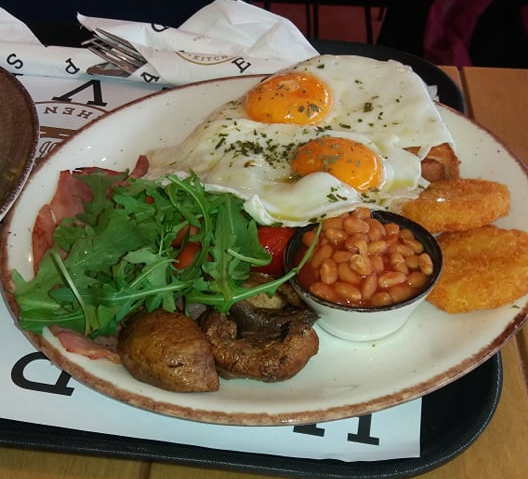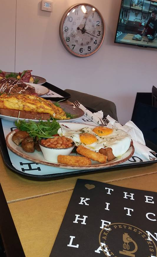 Η μεγάλη ώρα έφτασε. Από που να αρχίσεις και που να τελειώσεις; Ξεκινήσαμε με το English Breakfast! 2 αυγά τηγανιτά, φρυγανισμένο ψωμί, μπέικον, μανιτάρια, λουκάνινο, ντοματίνια, baked beans και κροκέτες πατάτας! Αν ήταν ποδοσφαιριστής θα ήταν ο Χάρι Κέιν! Ο Θάνος Σαρρής πήρε επ' ώμου το Eggs Benedict με σολομό, στο οποίο συναντάς ψωμί brioche, δύο αυγά ποσέ, sauce holandaise και σολομό gravadlax.
