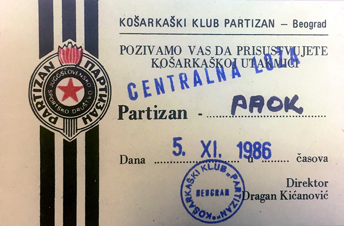 Δε θα πω ποιος είχε το πιο σπάνιο αναμνηστικό (η σπίθα της συλλεκτικής μου μανίας υπάρχει από την εποχή που συμπλήρωνα τα ποδοσφαιρικά άλμπουμ της Panini) ή πήρε τα περισσότερα «likes», μου είναι παντελώς αδιάφορο. Εγώ πόσταρα μια σελίδα από το γαλλικό περιοδικό «Maxi Basket» του 1993. Το διάβαζα στο ταξίδι του μπασκετικού ΠΑΟΚ προς το Λιμόζ απεσταλμένος της εφημερίδας «Μακεδονίας». Ο διευθυντής επικοινωνίας της «ασπρόμαυρης» ΚΑΕ (με ατελείωτες ώρες ψαξίματος και σημαντική συμβολή στη δημιουργία της μπασκετικής Βίβλου του «Δικεφάλου», «Οι πρωταγωνιστές», το οποίο ο Βασίλης Σκουντής το χαρακτήρισε «Κιβωτό») ανέβασε μια κάρτα εισόδου στον αγώνα Παρτιζάν – ΠΑΟΚ το 1986. Όχι μια όποια κι όποια κάρτα εισόδου, αλλά αυτή που στην ούγια της έφερε την υπογραφή ενός θρύλου του γιουγκοσλάβικου μπάσκετ, του Ντράγκαν Κιτσάνοβιτς.