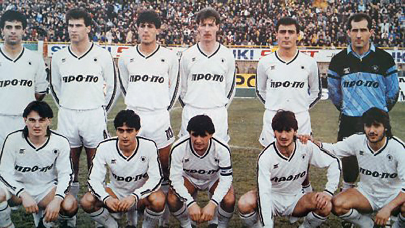 Ο ΠΑΟΚ του 1988: Απ’ το πουθενά η ομάδα της σεζόν 1987-88 ακουμπάει τον τίτλο και τον χάνει με διαφορά 4 βαθμών από την ΑΕΛ. Η χρονιά ξεκίνησε με τον Τάις Λίμπρεχτς στον πάγκο, ωστόσο μετά το επιβλητικό, αξέχαστο, μοναδικό 6-1 επί του Ολυμπιακού στις Σέρρες, ο Ολλανδός προπονητής μαζί με τον Χάρη Μπανιώτη θα παραχωρηθούν στην ομάδα του Κοσκωτά. Μια ομάδα με σέντερ φορ τον Ιρλανδό Πολ Μπάνον, ηγέτη τον Γιώργο Σκαρτάδο και πρωτοεμφανιζόμενους Λεοντιάδη, Λαγωνίδη και Σερέτη.