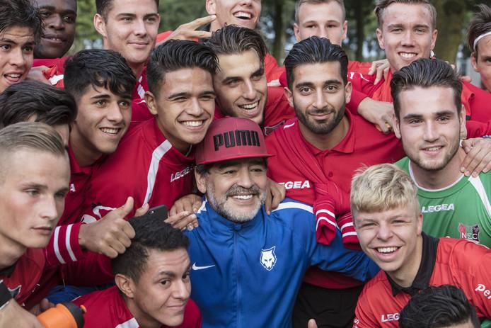 Μετά το πέρας του αγώνα ένα τσούρμο πιτσιρικάδων που ανήκε στην τοπική ομάδα εισέβαλε στο γήπεδο προκειμένου να βγάλουν μια αναμνηστική φωτογραφία με τον «Ντιεγκίτο». Ο τελευταίος είχε όμως έναν ακόμη λόγο να φορέσει το πιο αστραφτερό χαμόγελο του.