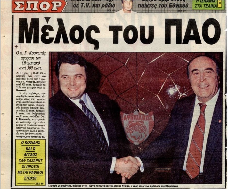 Επιστρέφοντας στα τέλη Νοεμβρίου του 1987, η ΠΑΕ Ολυμπιακός είχε αλλάξει ιδιοκτησία έχοντας περάσει από τα χέρια του Σταύρου Νταϊφά σ’ αυτά του Γιώργου Κοσκωτά. Ο νέος ιδιοκτήτης του Ολυμπιακού, μαζί με τον αδερφό του Σταύρο, σαρώνουν τα πάντα και αγοράζουν ότι καλύτερο θεωρούν ότι υπάρχει στην αγορά. Αποδείχθηκε όμως ότι μόνο με τα λεφτά δε φτιάχνεις ομάδα, όσα κι αν σκορπίσεις, είτε είναι, είτε δεν είναι δικά σου τα χρήματα…