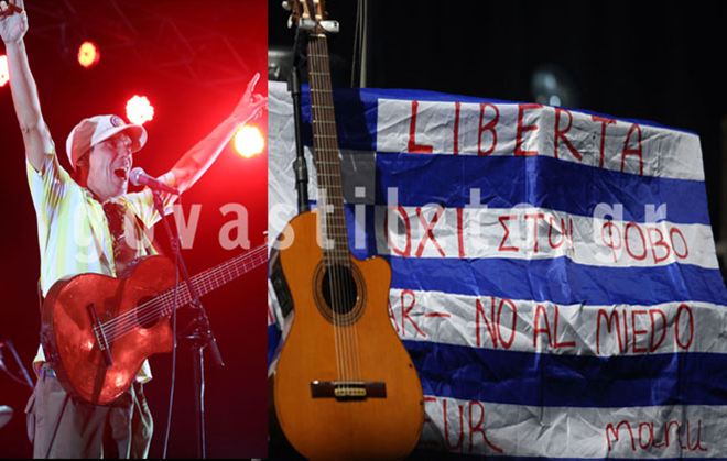 Ενδιάμεσα ξανά και μανά εκείνο το χορευτικό εμβατήριο των πνευστών. Ελεγε ο τύπος μετά τα κομμάτια του ««Ευχαριστώ Ελλάδα για το κουράγιο που δείχνεις» και ξαναφώναζε για την Ελπίδα. Για Μανού Τσάο πάντως που σέβεται τον εαυτό του η αλήθεια είναι ότι δεν έδωσε ιδιαίτερη πολιτική χροιά. Η σημαία με το «liberta», εκείνη με το «αντί-Ναζί» και το «όχι στον φόβο» που βγήκε στο Tera Vibe ήταν τα πιο έντονα μηνύματα που άφησε να περάσουν.