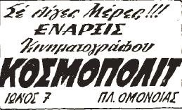 Από κοντά το «Αθηναϊκόν» που βρίσκεται σε απόσταση αναπνοής από το Δημαρχείο των Αθηνών, το «Σινέ Ορφέο» στην Πλατεία Αττικής (σ.σ.: το μοναδικό συνοικιακό), αλλά και τον «Κοσμπολίτ» στην Πλατεία Ομονοίας.
